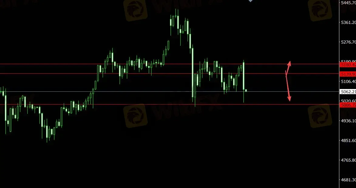 美元指数受支撑,黄金承压。关注支撑位5006.70,4小时看多至5184.40,关注压力位5139.90,4小时看空至4968.80。