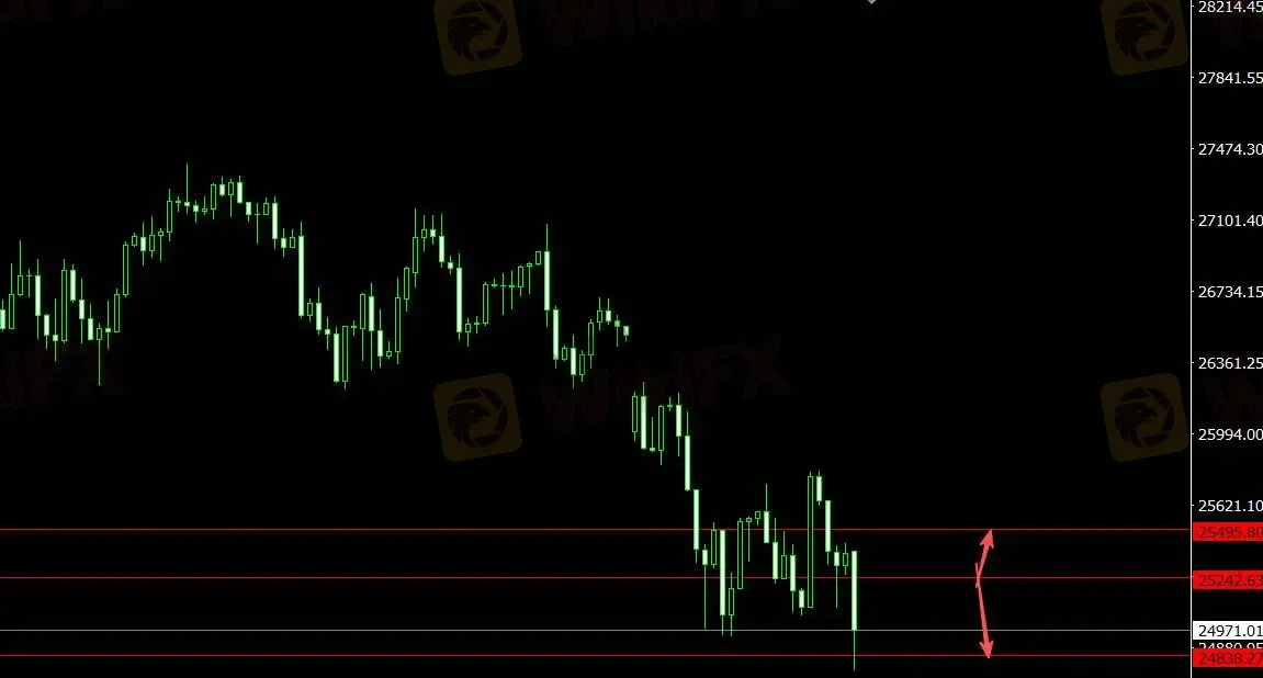 美元指数受支撑,恒指承压,关注支撑位24838.30,4小时看多至25495.80;关注压力位25242.60,4小时看空至24719.80。