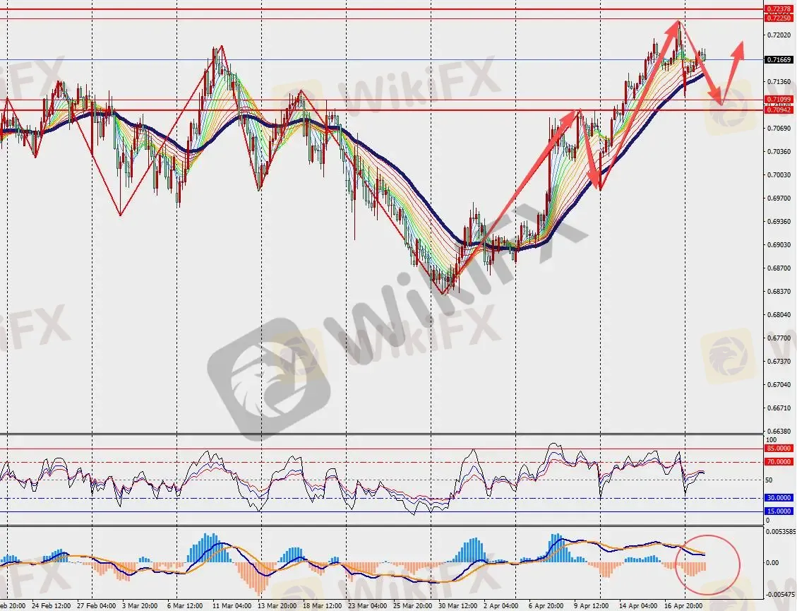 技术面:澳元兑美元H4级别小幅回落,并依旧在48日多空分界线上方运行。此外,MACD双线和量能柱在零轴上方扩张。当前,澳储行在控制通胀与经济增长之间可用的工具有限。除直接调整现金利率外,通过官员言论引导市场预期成为重要手段。