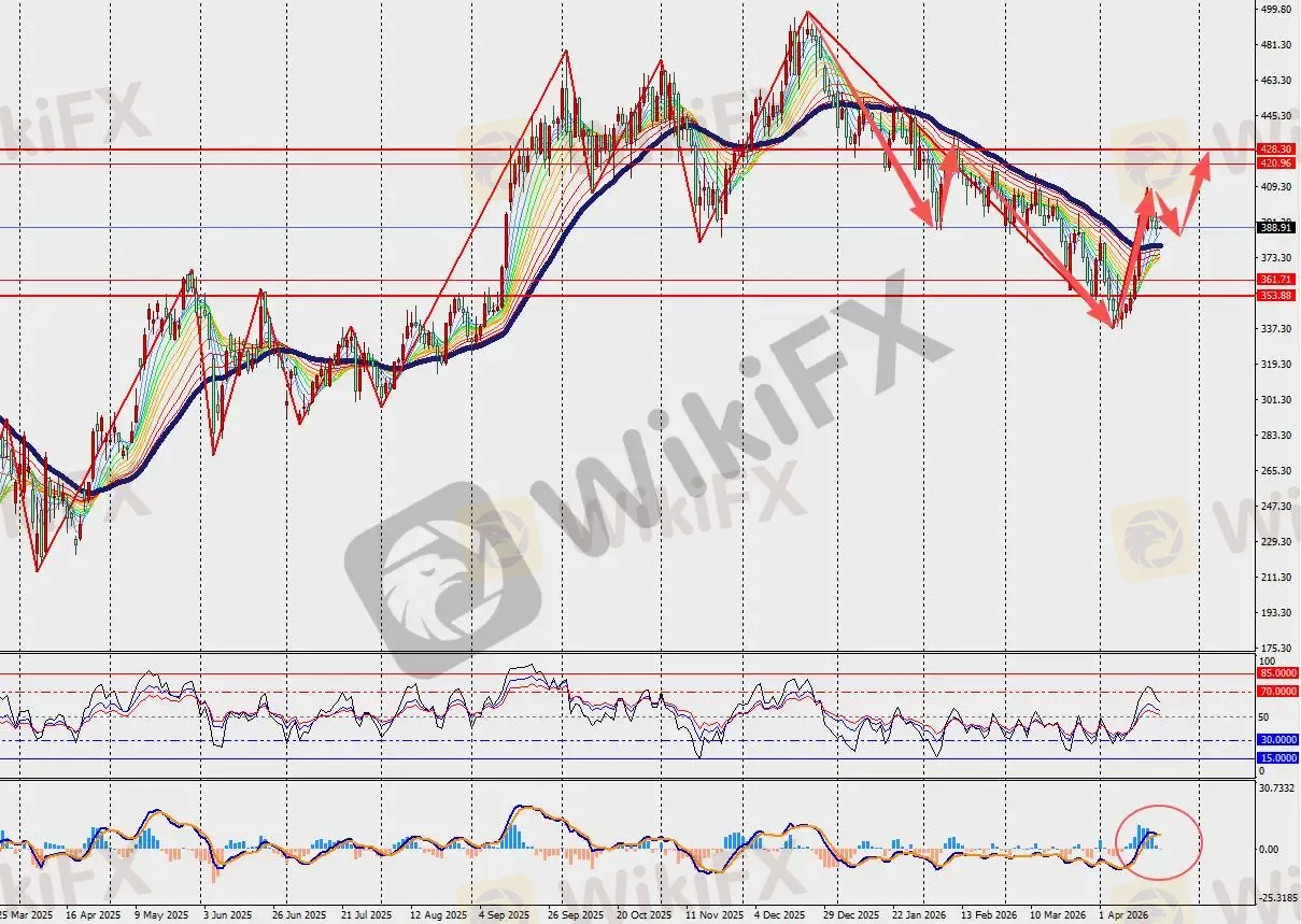 技术面:黄金H4级别震荡反弹,并在48日多空分界线附近运行。此外,MACD双线和量能柱在零轴下方扩张。整体来看,黄金中期依然可以坚定持有,核心驱动力在于美元信用体系边际弱化及实际利率下行预期。