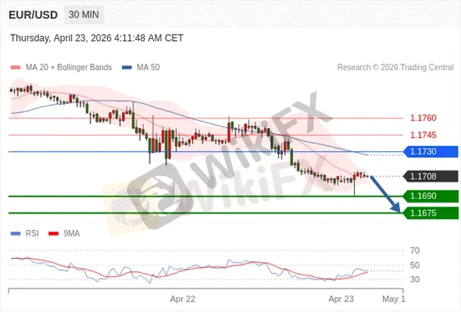 交易策略: 在 1.1730 之下,看跌,目标价位为 1.1690 ,然后为 1.1675。