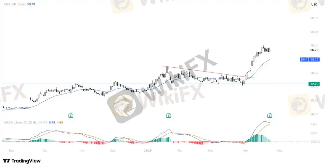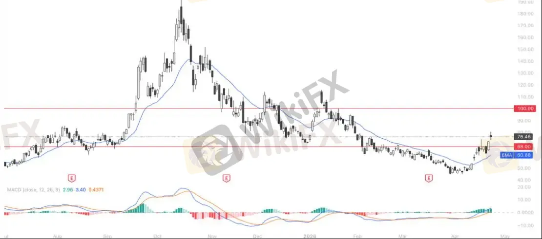 技术面上,若能持续站稳68美元低点,有望继续挑战100美元关口。