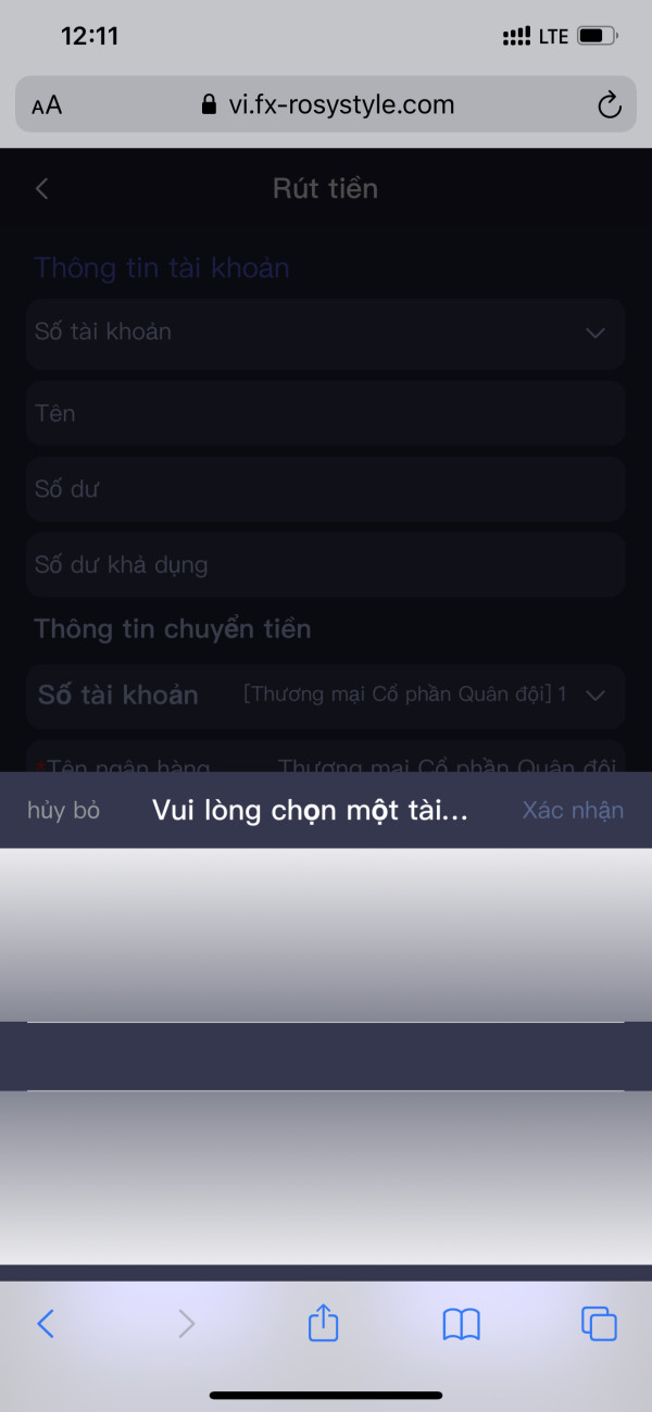 Hệ thống ko thấy tài khoản để rút tiền