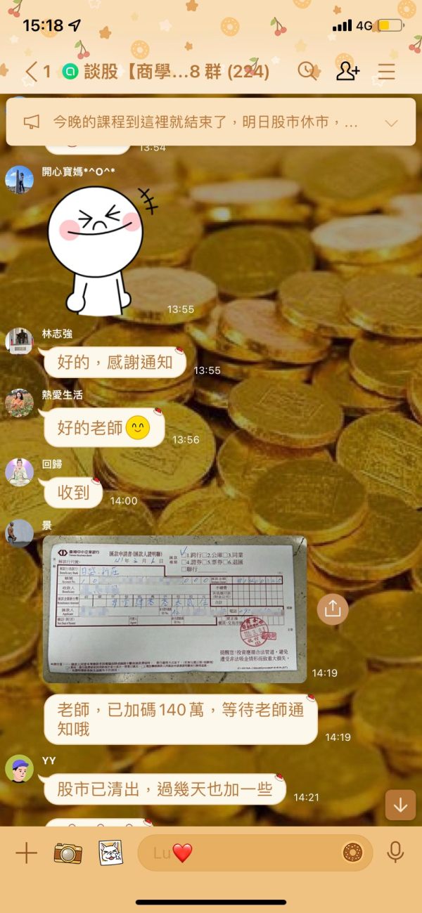 使用群組誘騙人大量投入資金,之後再教操作一次把資金全輸光,事後發現他們的平台漲跟跌都是自己操控的
