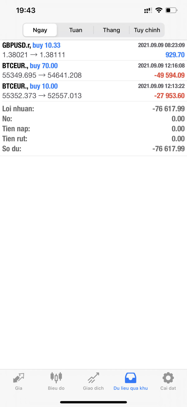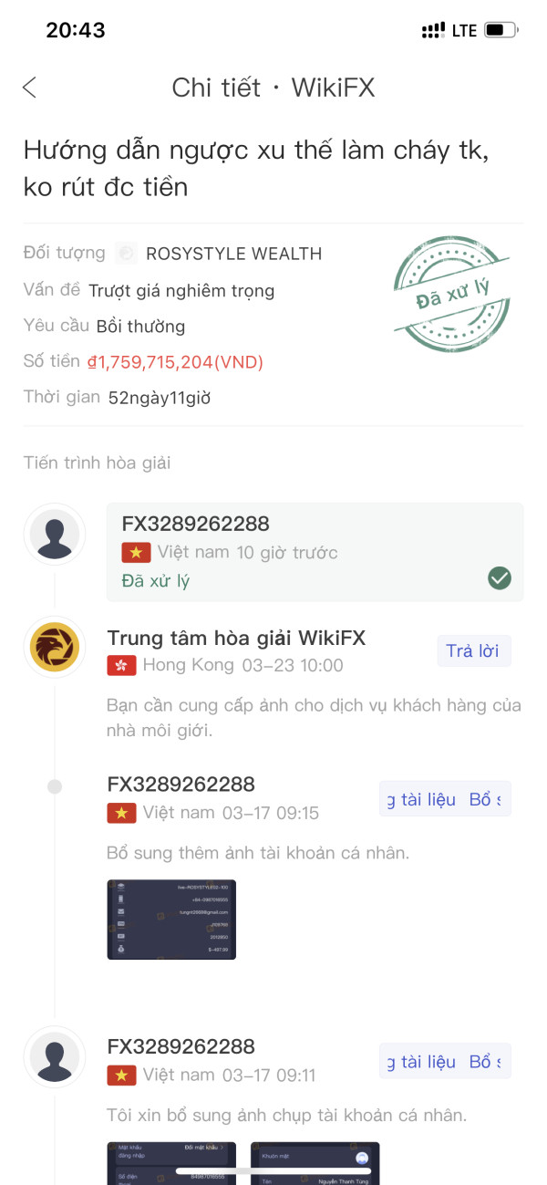 Tôi biết đến và tham gia sàn giao dịch ngoại hối lần đầu là do nhóm lừa đảo của sàn giao dịch này. họ đã hướng dẫn và yêu cầu tôi mua các cặp tiền tệ đi ngược xu thế làm cháy tài khoản của tôi vào ngày 09/09/2021. Tôi có làm khiếu nại đến snaf này vào ngày 28/02/2022. tuy nhiên đến ngày 22/04/2022 tôi nhận được thông báo là đã xử lý và giải quyết cho tôi. nhưng thực tế tôi chưa nhận được sự bồi thường nào từ sự giải quyết của sàn này. nay tôi khiếu nại lại vấn đề của tôi và yêu cầu sàn bồi thường tổn thất cho tôi về sự lừa đảo làm cháy tài khoản của tôi với số tiền là 76.618 đô la.