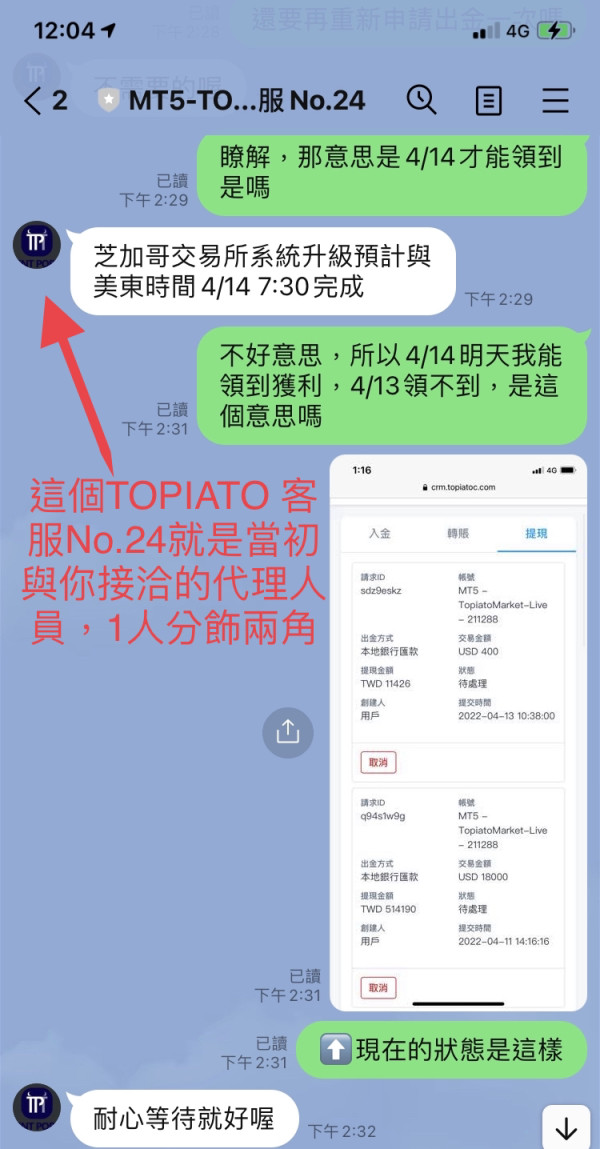 詐騙平台TOPIATO 不出金且持續詐騙中