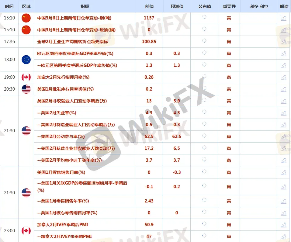 CWG Markets市場資訊 2026年3月6日(週五):