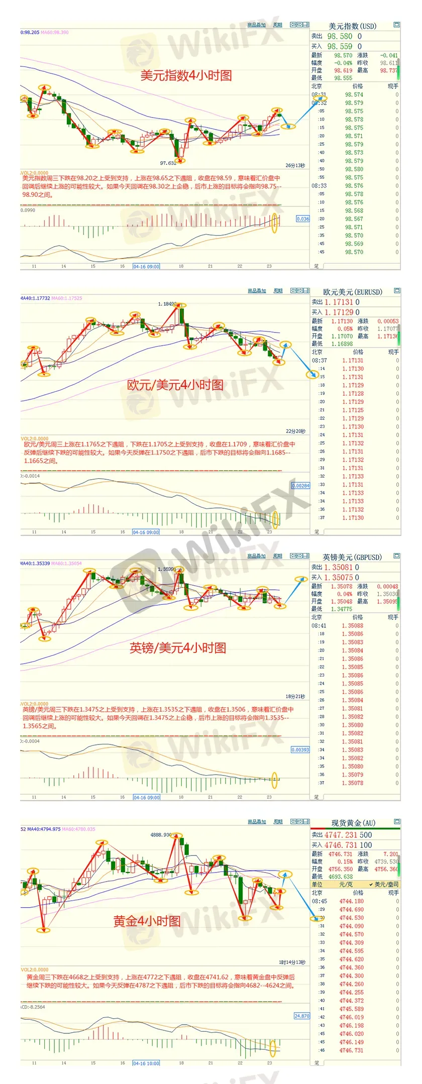 摘要:CWG Markets市場資訊 2026年4月23日(週四)匯訊摘要:週三,受美以與伊朗持續衝突引發的擔憂影響,美元指數先跌後漲,最終收漲0.24%,報98.61;基準的10年期美債殖利率收報4.307%,對聯準會政策利率敏感的2年期美債殖利率則收報3.806%。週四(台北時間4月23日)亞市早盤,現貨黃金交投於4730美元/盎司附近,日內或測試4700美元/盎司關口,美伊和平談判能否重啟還存在不